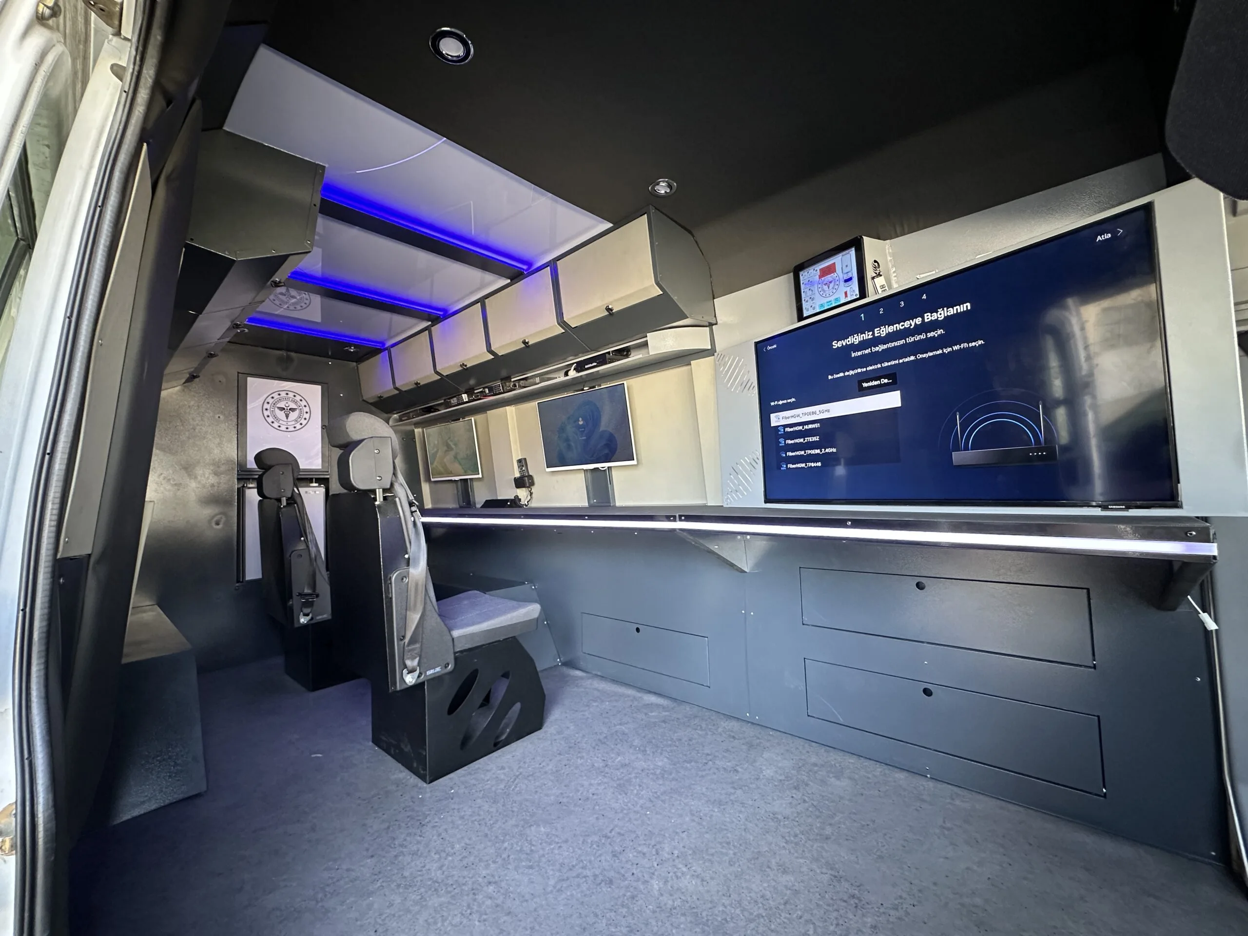 Merkezde yer alan dijital kontrol paneli, araç içerisindeki tüm fonksiyonları (aydınlatma, havalandırma, güç yönetimi, ekran kontrolü, çevresel sistemler vb.) merkezi bir arayüz üzerinden yönetmeyi mümkün kılar. Kullanıcı dostu arayüzü sayesinde operatörler, tüm sistemi hızlı ve güvenli bir şekilde kontrol edebilir.